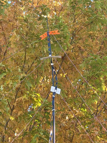 For antennas, I ran inverted V’s on 40, 20, and 10 meters, all fed with window line. A balun and choke kept things quiet enough so the camper’s fake fireplace didn’t click on and off whenever I keyed up on 20 meters. The setup even worked nicely on 15 meters. They’ll need some pruning next time, but I was pretty happy with the performance. To make things easier, I built wire winders directly into the antennas—slick, right?